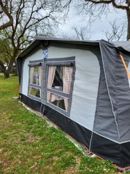 Possibilité de louer la caravane avec le auvent. Intérieur du auvent tout équipé, réfrigérateur, congélateur, gaz, table et vaisselle fournie.