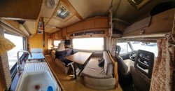 Autocaravana vintage, es una LMC Liberty 6400, tope de gama de su época, .Tiene todos los servicios disponibles, desde agua caliente, nevera y congelador de 12v, tv con smartv, wifi, cocina y barbacoa de gas,.... sólo necesitas llenar la nevera y disfrutar de la isla. Es 6 plazas para dormi, 5 adultos y un niño de hasta 10 años, pero lo ideal es 4 o 5 máximo, por suerte es una autocaravana con 2 salones, muy amplia, son casi 7m...